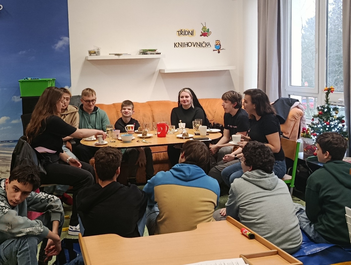 Ve čtvrtek 11. 12. 2025 se uskutečnilo již druhé setkání žáků 8. a 9. ročníků s bývalými žáky naší školy. Při příjemném, předvánočně naladěném posezení si vyslechli zkušenosti, zážitky a pocity žáků, kteří vycházeli z devítky vloni, nebo také před dvanácti lety. Děkujeme našim bývalým žákům nejen za to, že se k nám vracejí, ale také za ochotu sdílet své zkušenosti s mladšími spolužáky. Jsme vždy rádi, když je po letech můžeme vidět, popovídat si a zjistit, jak se jim daří.